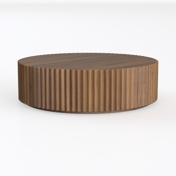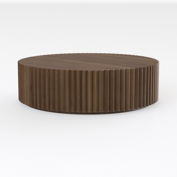 Crafted with inspiration from natural wood grain and geometric precision, this piece features a warm, tactile wood texture with smooth edges and vertical ribbed sides, blending organic warmth and structured elegance. Ideal for modern minimalist or Scandinavian living rooms, pairing beautifully with soft textiles and metallic accents. Sturdy base ensures stability, while the circular top maximizes surface space for coffee, books, or decor, balancing style and practicality.