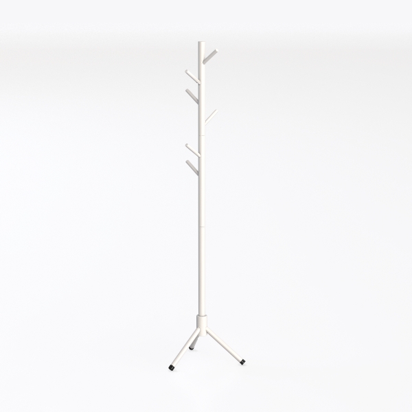 Designed with nature-inspired simplicity, its slender form mimics a young tree with graceful branches. Crafted from smooth, matte white metal, the surface feels cool to the touch, while clean lines create a lightweight, airy visual appeal. Perfect for modern minimalism or Scandinavian spaces, it fits seamlessly in entryways or bedrooms, complementing neutral tones and wooden accents. The three angled hooks easily hold coats, bags, and hats, with a stable triangular base ensuring no wobbling, blending utility and understated elegance.