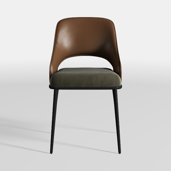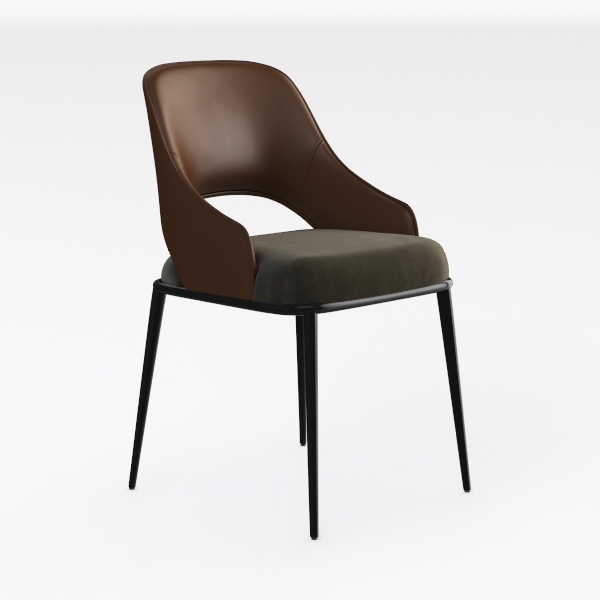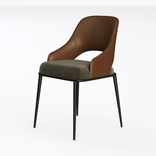 Designed with organic curves and sleek lines, drawing inspiration from natural comfort and modern minimalism. The warm brown leather backrest feels smooth and supple, while the soft green velvet seat offers gentle, supportive cushioning. Its elegant silhouette, paired with slender black legs, creates a balanced, sophisticated look. Ideal for a modern dining room or living area, it complements wooden tables and metallic accents, elevating contemporary charm. The ergonomic design ensures all-day comfort, blending style and practicality seamlessly.