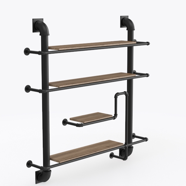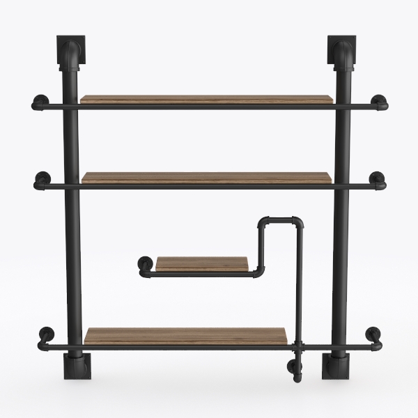 Inspired by industrial heritage, this shelving unit blends cold metal frames with warm wooden shelves, offering rugged durability and cozy texture. It’s ideal for modern lofts or industrial study rooms, pairing seamlessly with exposed brick and vintage decor. Sturdy metal joints support four wooden shelves, with a staggered lower shelf maximizing storage flexibility.