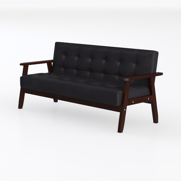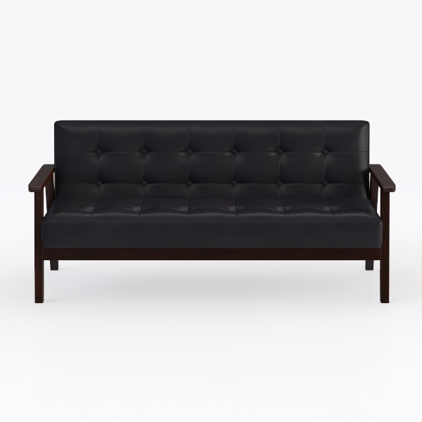 AODAILIHB Modern Wooden Leather 2-Seat Sofa, Sleek Minimalist Loveseat, Sturdy and Long-Lasting Loveseat Sofa Couch, Home Office Furniture (Black)