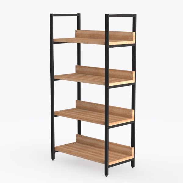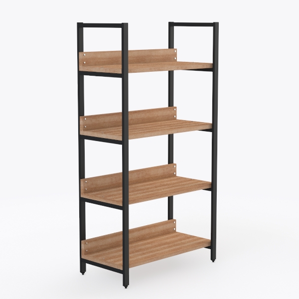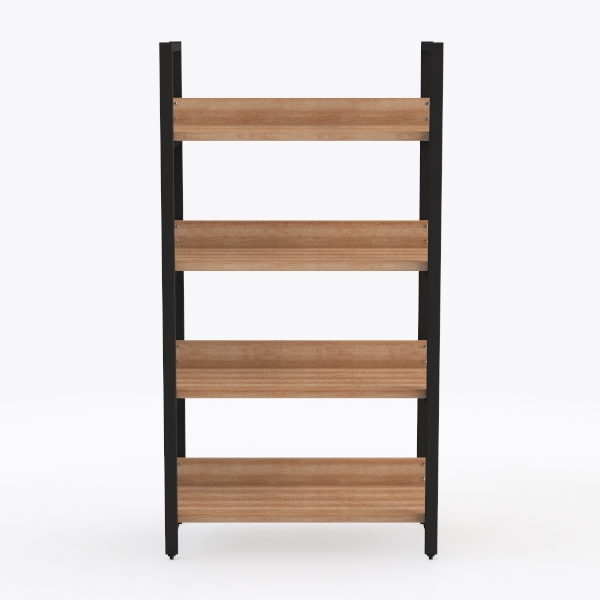 Inspired by merging industrial sturdiness with natural warmth, this shelving unit has smooth, grainy wooden shelves and sleek black metal frames. Warm wood offers a tactile softness, while matte metal adds sharp structural contrast, creating a balanced, modern look. Ideal for modern, Scandinavian, or industrial spaces—perfect for living rooms, studies, or bedrooms, it provides sturdy, evenly spaced shelves for organized storage of books, plants, or decor.