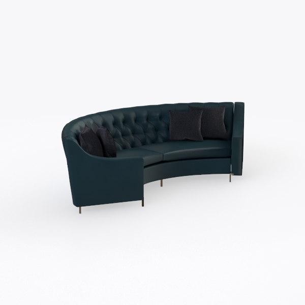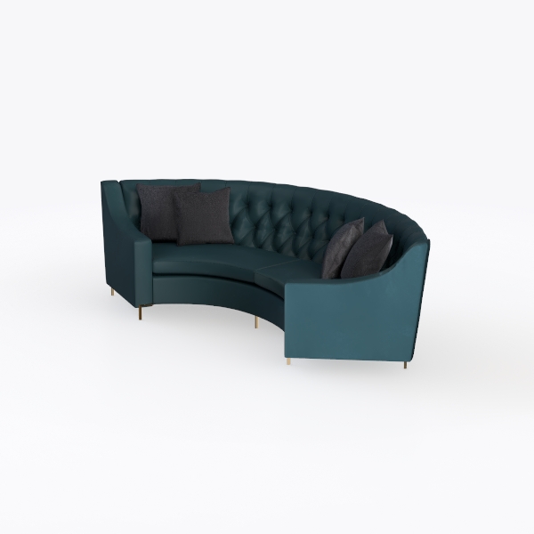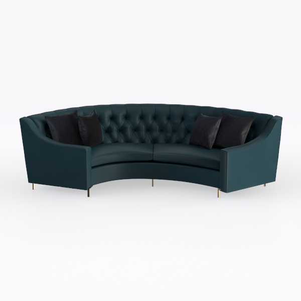 Ideal for modern-luxe interiors, it shines in spaces where style meets relaxation, pairing seamlessly with marble coffee tables, gold-accented floor lamps, or warm-toned wooden sideboards. Its curved silhouette softens angular lines in minimalist settings, or complements vintage accents like a plush rug or crystal vases for a curated, inviting vibe. Functionality meets form here: the generous seat depth cradle the body, while the wide, supportive cushions ensure hours of comfortable lounging, whether for lazy afternoons or lively conversations. A true blend of artistry and practicality, it transforms any room into a haven of refined comfort.