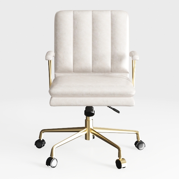 Inspired by mid-century modern design with a contemporary edge, this chair blends soft, textured beige upholstery—luxurious to the touch—with sleek gold metal armrests and a geometric base. Ideal for a minimalist home office or study, it pairs beautifully with neutral desks and warm wood accents, offering a generously padded seat for all-day comfort and smooth-rolling casters with height adjustability for practicality.