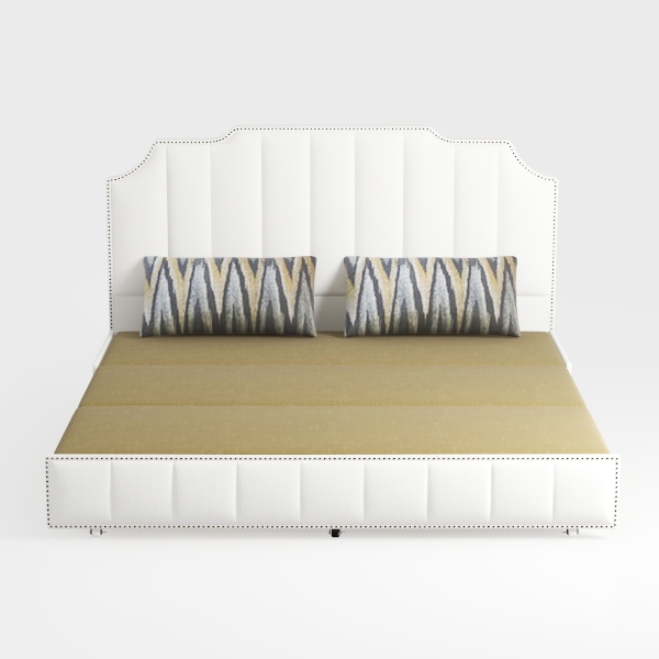 Crafted with inspiration from the soft curves and refined details of classic upholstered furniture, this bed marries timeless elegance with modern simplicity. Its headboard and footboard feature gentle tufted indents, stitched with crisp white thread that adds subtle texture without overwhelming the clean, uncluttered silhouette. The upholstery feels luxuriously soft to the touch—plush yet breathable, like sinking into a cloud of comfort—while the smooth, matte finish of the white fabric reflects light, making the bed appear to float softly in the room.