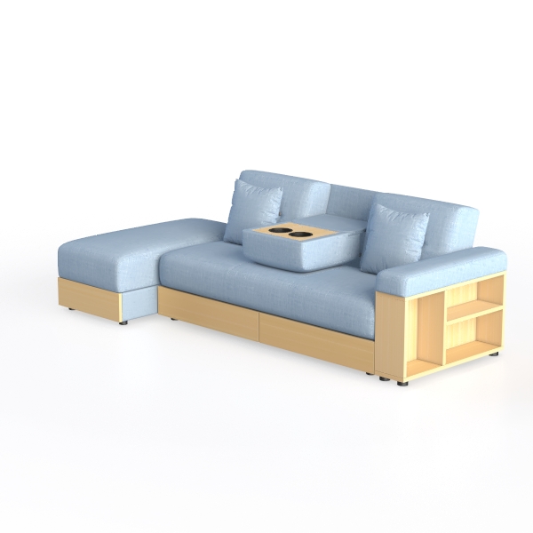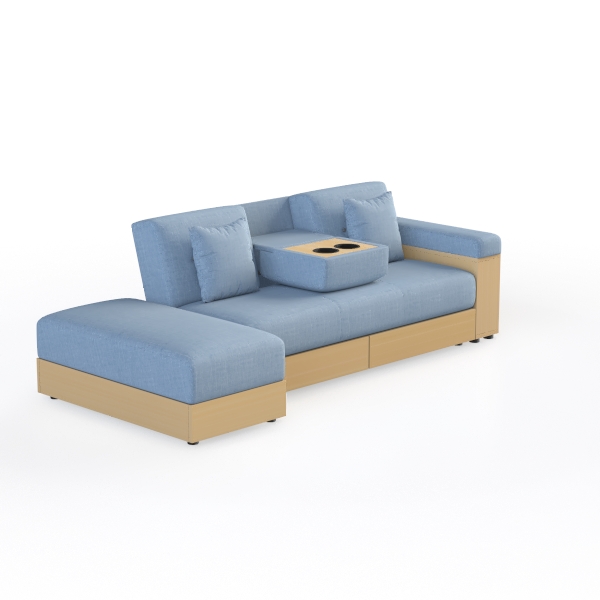 Designed to embody the essence of relaxed, everyday living, this sofa draws inspiration from the harmony of nature and minimalism, with clean lines and soft, inviting forms that mirror the calm of a sunlit room. The light blue upholstery, crafted from a textured, breathable fabric, feels surprisingly plush to the touch—soft yet resilient, as if designed to cradle you during long evenings. Complemented by warm oak-finished wooden armrests and a sleek base, the piece balances cool serenity with earthy warmth, creating a visually cohesive look that never feels cluttered.