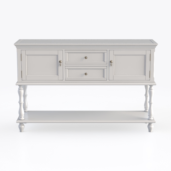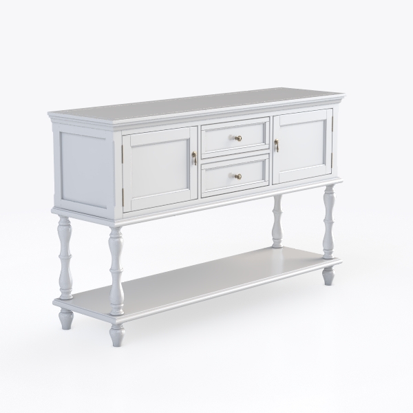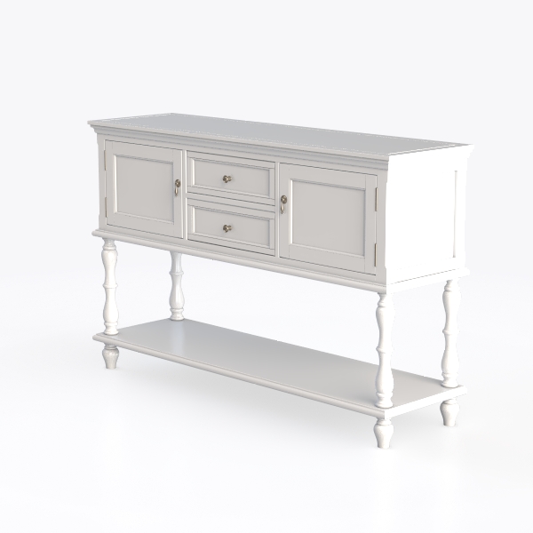 Inspired by classic design, this piece blends timeless charm with modern simplicity. Its smooth matte white surface feels cool to touch, with clean lines creating a light, airy vibe. Ideal for Scandinavian or cottage-style spaces, pairs well with wooden tables and soft textiles. Two drawers and cabinets offer ample storage, lower open shelf adds space for decor or plants.