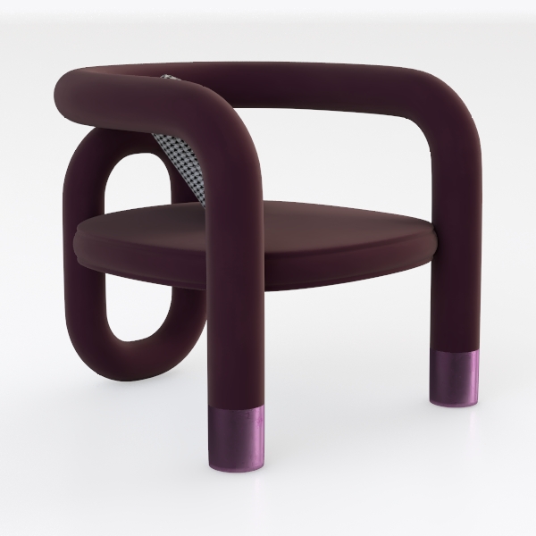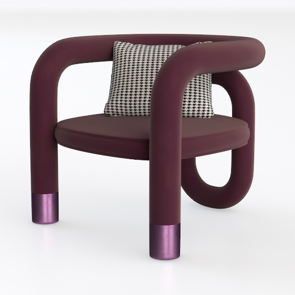 Inspired by natural, flowing curves, this armchair blends a deep plum matte surface with sleek metallic magenta leg accents. A textured houndstooth pillow adds contrast, perfect for modern minimalist or mid-century living rooms—pair with neutral sofas and marble tables. The roomy, curved seat offers exceptional comfort for relaxed lounging.