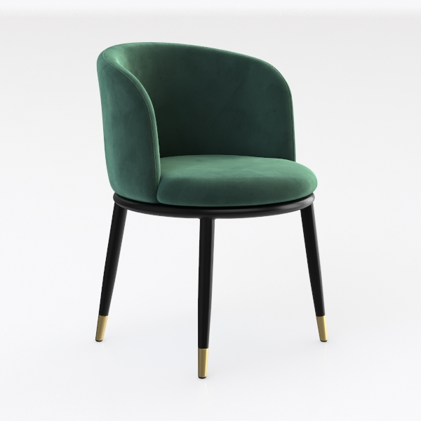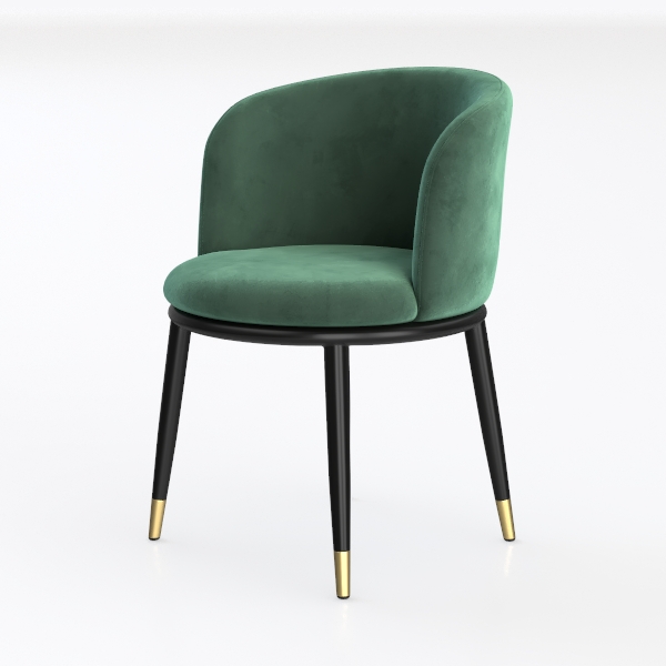 Inspired by mid-century modern design with art deco touches, this chair blends retro charm and contemporary elegance. Its soft, plush velvet upholstery feels luxurious, while sleek black metal legs with golden tips add a polished glow. Ideal for a modern minimalist dining room or cozy living nook, pairing beautifully with marble tables and metallic accents. The plump seat cushion ensures exceptional comfort, and stable, slender legs guarantee steady support.