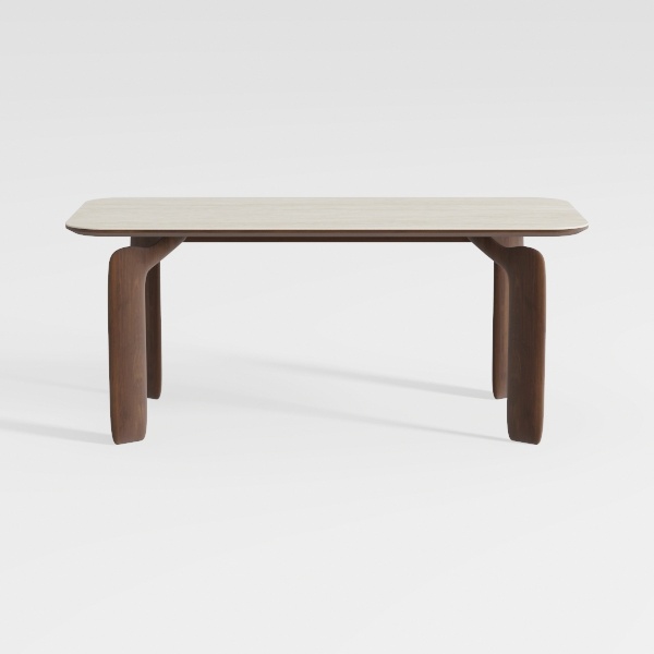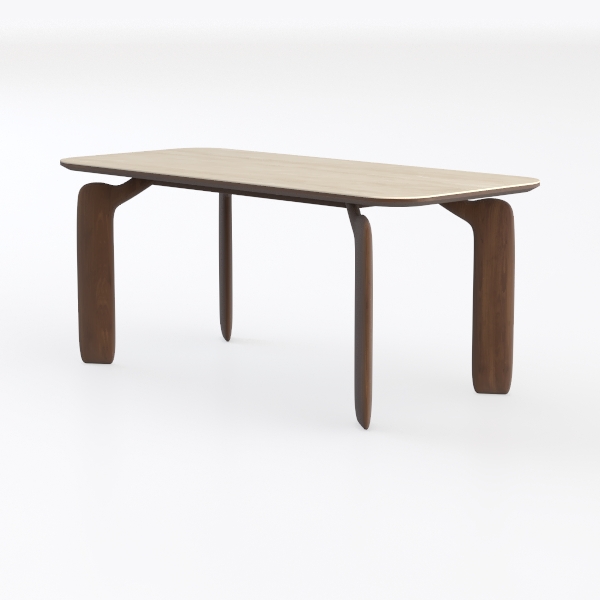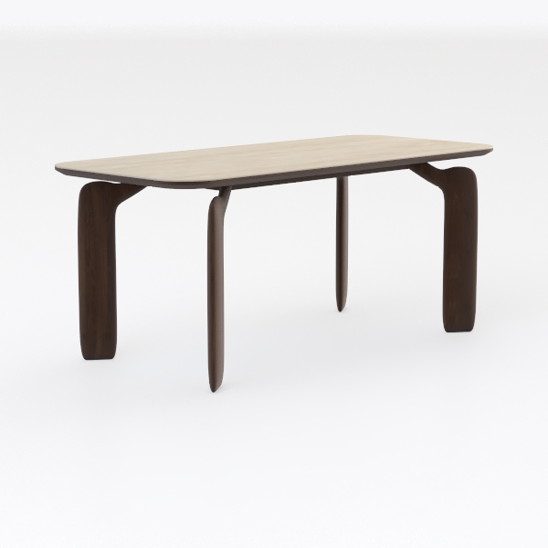 Inspired by organic curves and minimalist geometry, this table blends softness with structure. The smooth, light-toned tabletop contrasts beautifully with warm, textured dark wood legs, offering a serene, uncluttered look. Ample surface space suits dining or work, while stable, sculptural legs ensure durability. Ideal for modern, Scandinavian, or industrial living/dining—pair with metal accents and plants for a cohesive, elegant vibe.