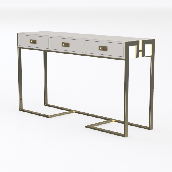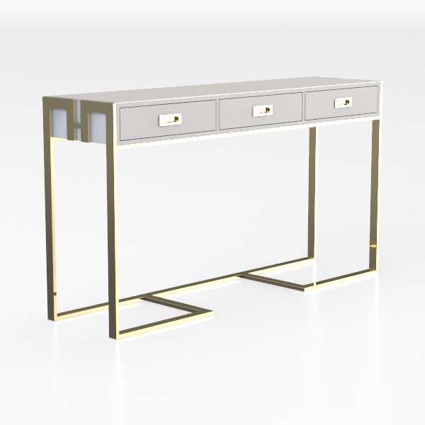 Inspired by mid-century modern minimalism, blending sleek lines with warm metallic accents, this piece features smooth, glossy white surfaces that contrast beautifully with the polished gold metal frame, creating a refined, airy feel. Ideal for a contemporary living room or home office, it pairs stunningly with marble coffee tables, velvet sofas, and soft ambient lighting. Three functional drawers offer ample storage, balancing style with practicality.