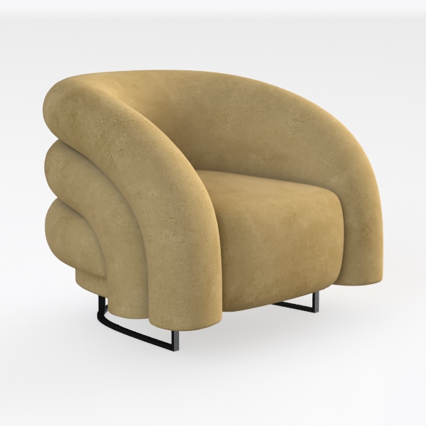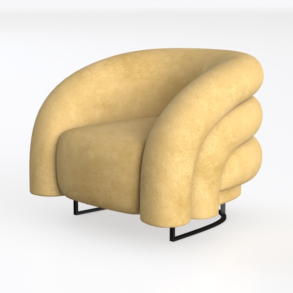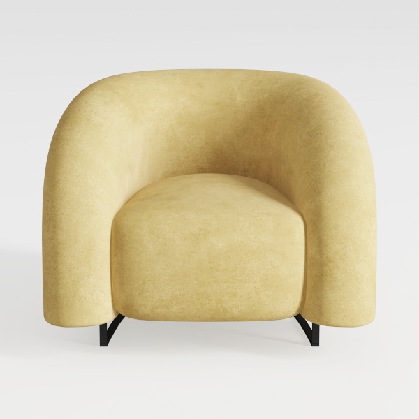 Crafted with organic curves inspired by mid-century design, this armchair features a soft, buttery upholstery in a warm, golden hue. Its plush yet structured texture invites gentle touches, while smooth lines create a calm, inviting presence. Perfect for minimalist living rooms, it pairs beautifully with light wood coffee tables and woven rugs, elevating Scandinavian or modern bohemian spaces. The deep seat offers exceptional comfort, supporting relaxed lounging, with sleek black metal legs adding understated elegance.