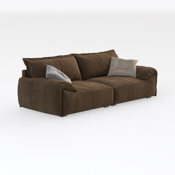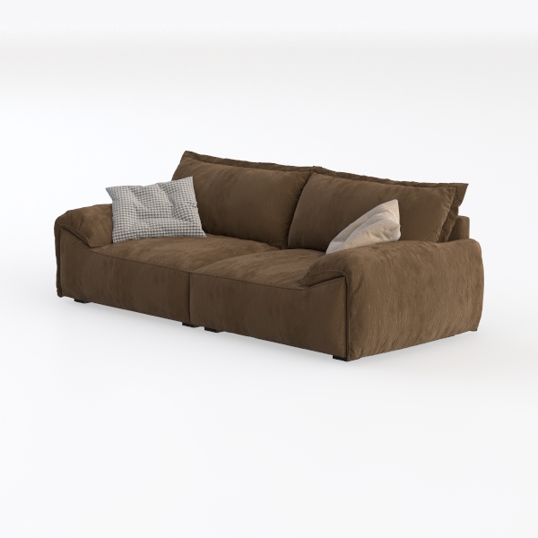 Inspired by the harmony of comfort and understated elegance, this sofa draws from a blend of mid-century modern warmth and contemporary minimalism. Crafted with a soft, textured fabric in a rich, earthy brown hue, its surface feels velvety to the touch—plush yet not overly heavy, inviting a gentle sink-in that wraps you in coziness. Subtle, intentional folds along the arms and back add depth to its visual appeal, creating a look that balances structure with organic softness, avoiding the starkness of rigid designs.