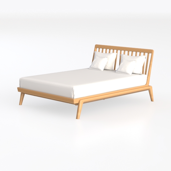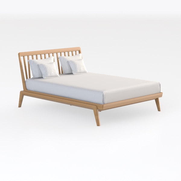 Inspired by natural minimalism, this bed features a warm, smooth oak frame that blends seamlessly with soft, crisp white linens. Its clean lines and neutral tones exude calm, minimalist elegance, making it a focal point in any bedroom. Ideal for a serene modern or Scandinavian-style space, pair it with a plush area rug and potted greenery to enhance its tranquil vibe. The spacious headboard and sturdy base offer ample support, ensuring both style and comfort for restful nights.