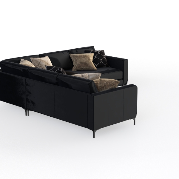 Elegantly structured, this L-shaped sofa embodies the spirit of modern minimalism, drawing inspiration from the harmonious balance of form and function in urban living. Its streamlined silhouette, with crisp, unbroken lines and a deep, enveloping design, feels both bold and inviting, making it a natural centerpiece for a living space that prioritizes calm and style.