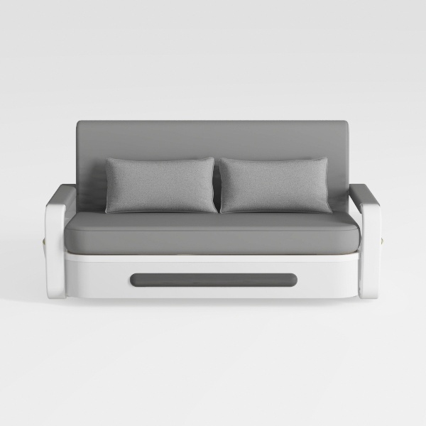 Visually, the sofa feels light and airy, its neutral palette (soft gray and crisp white) creating a calm backdrop that opens up a room. It shines in a modern living space, pairing effortlessly with a sleek marble coffee table and brass-accented floor lamps for a touch of轻奢, or in a Scandinavian-inspired setting with light wooden side tables and textured knit throws.