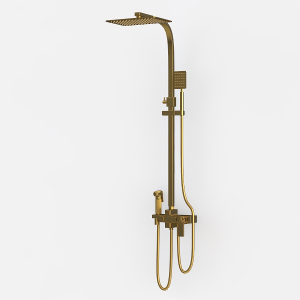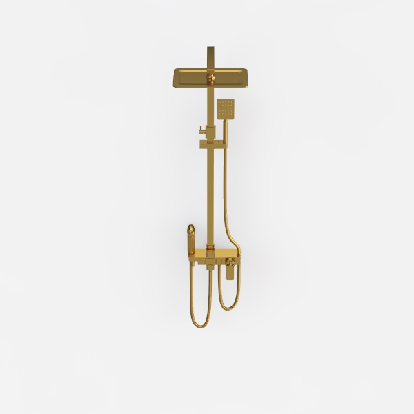 SR SUN RISE 12 Inch Brushed Gold Shower System, Wall-Mount Adjustable 16-Inch Slide Bar with 6-Function Hand Shower Faucet Included Valve and Trim Kit