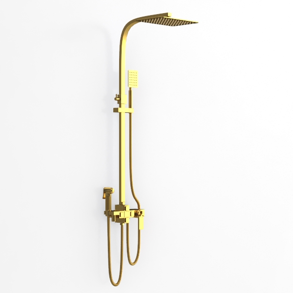 gotonovo Exposed Bathroom Shower Faucet Set Shower Fixture 8 Inch Rainfall Shower Head Handheld Shower Cross Handle Wall Mount 2 Functions Polished Gold