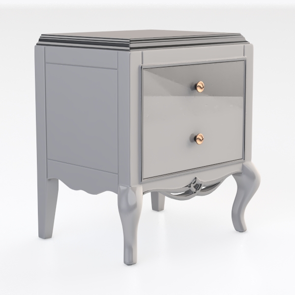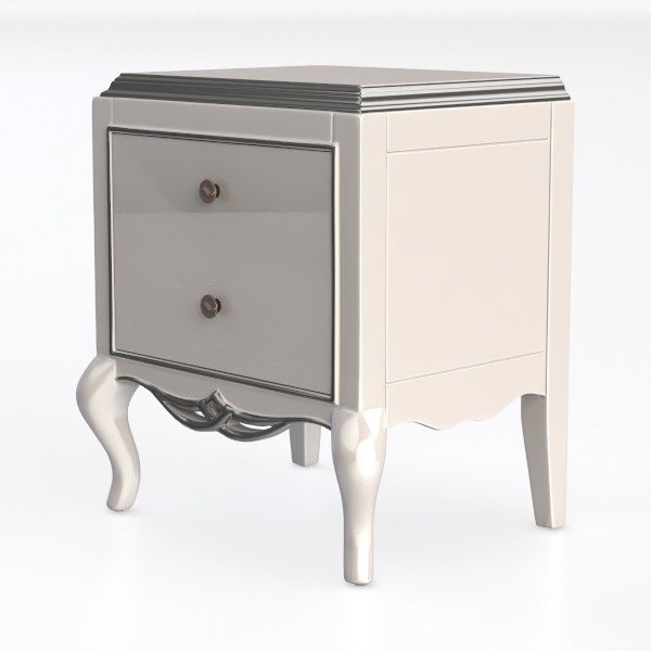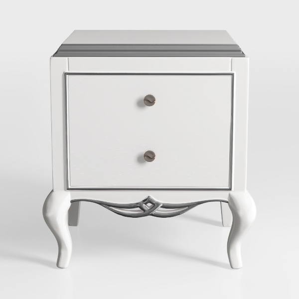 Inspired by timeless classic furniture, this nightstand blends a smooth white surface with metallic knobs for refined contrast. Delicate carved legs add elegant layering, perfect for a neoclassical or minimalist bedroom. Two drawers offer practical storage, enhancing organization with understated charm.