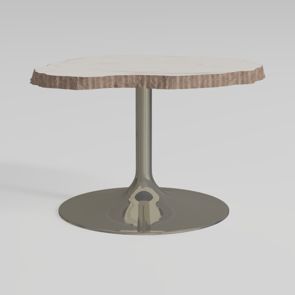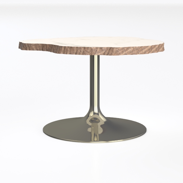 Designed to blend organic natural stone aesthetics with geometric precision, this round table features a smooth, marble-like top contrasting a raw, textured edge. Its sleek metallic base adds a cool, contemporary sheen, ideal for modern minimalist living rooms—pairing beautifully with soft sofas and warm-toned decor. A generous circular surface offers ample space for daily essentials, with a stable, weighted base ensuring steady support.