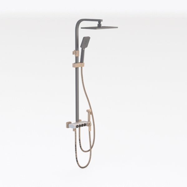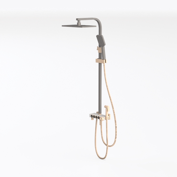 Thermostat Shower Faucet Set, Wall Mount Bathtub Faucet with Slide Bar, Waterfall Tub Filler with Hand Shower, Bidet Sprayer, Bathroom Shower Faucet-Brushed Gold