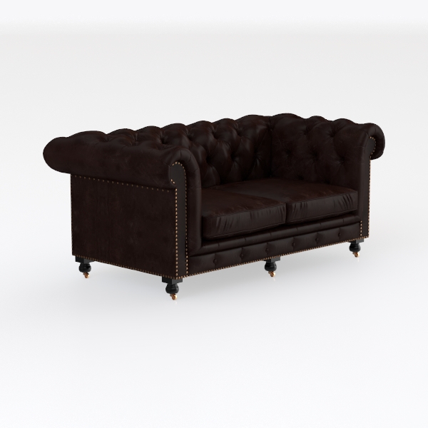 Inspired by the timeless allure of 19th-century Chesterfield sofas, this piece marries traditional craftsmanship with modern restraint. Its deep, warm brown upholstery—likely a sumptuous leather or textured fabric—boasts elegant button tufting, creating soft, inviting dimples that add depth to the surface. Polished metal nailhead trim traces the arms and base, infusing subtle opulence without overwhelming the design, while the curved armrests offer a comfortable, relaxed silhouette.