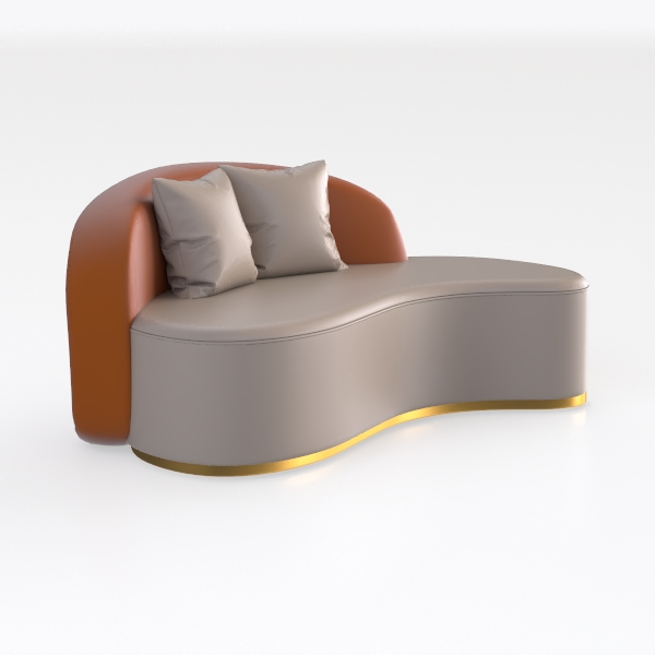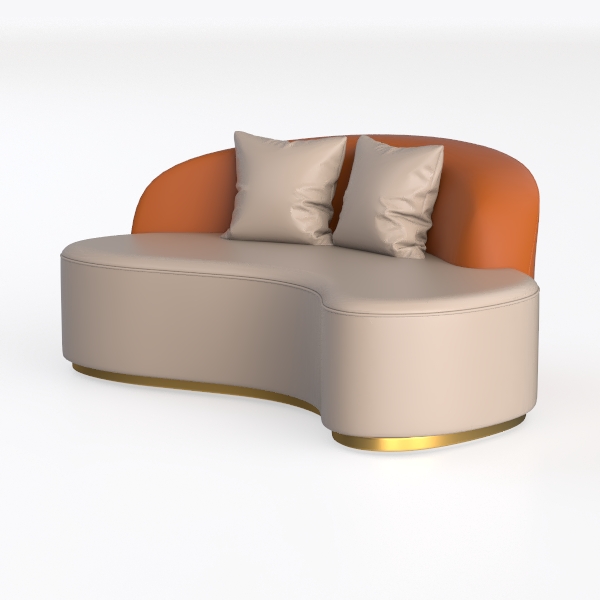 Inspired by the organic curves of natural forms like smooth seashells or flowing water, this sofa merges softness with modern sophistication. Its sleek, matte surface feels cool and refined to the touch, with a subtle sheen that catches light gently. The warm terracotta-orange backrest contrasts beautifully with the crisp off-white seat, creating a balanced palette that feels both inviting and elegant. The flowing, wave-like silhouette softens the room’s edges, while the thin gold trim along the base adds a touch of luxury, elevating the overall aesthetic without overwhelming it.