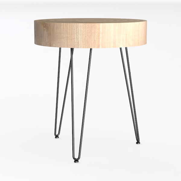 Inspired by blending organic warmth of natural wood with industrial minimalism, this side table features a smooth, polished wooden top with subtle wood grain, paired with sleek black metal legs. Its light yet sturdy build fits seamlessly into modern or Scandinavian spaces, ideal for a cozy living room or bedroom, complementing soft textiles and neutral-toned decor. The spacious top holds daily essentials like mugs or books, with slender legs ensuring stability.