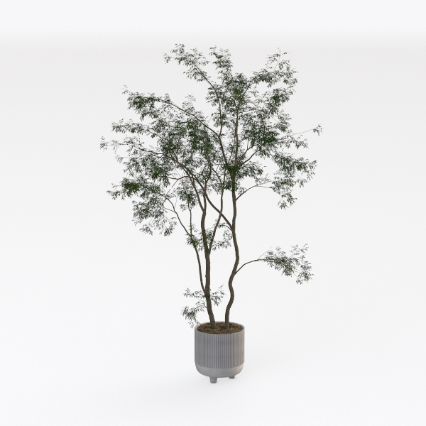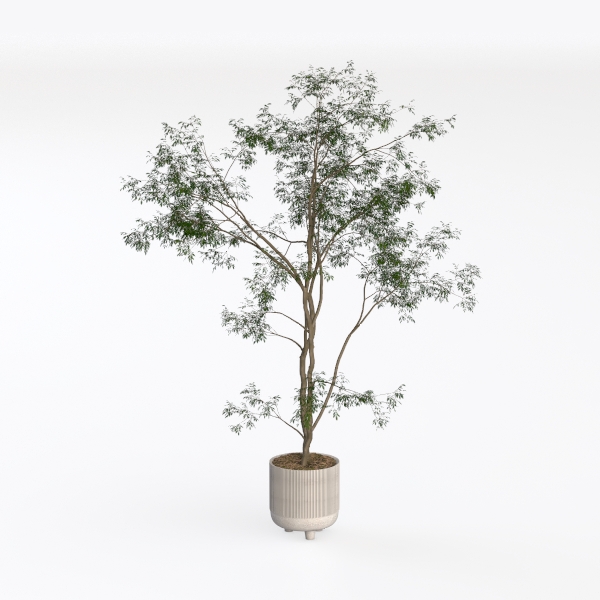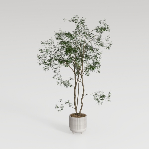 Inspired by nature's quiet beauty, this indoor plant showcases lush green foliage and slender, textured trunks, set in a white ribbed ceramic pot with subtle legs. Its clean, minimalist look complements modern minimalist or Scandinavian styles, perfect for living rooms or studies. Thick, bushy leaves filter air, while the balanced shape infuses vibrant life, enhancing cozy, organic vibes in bright, airy spaces.