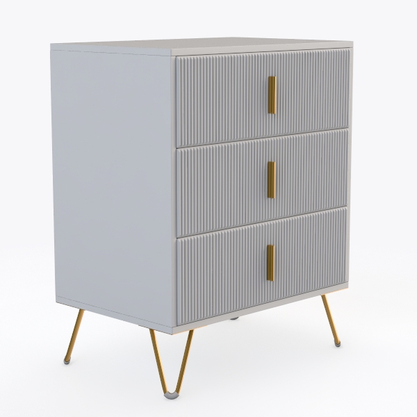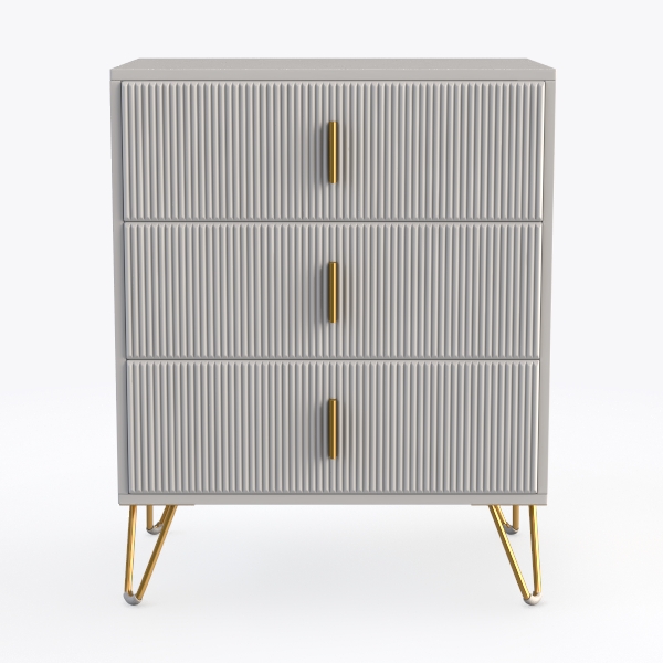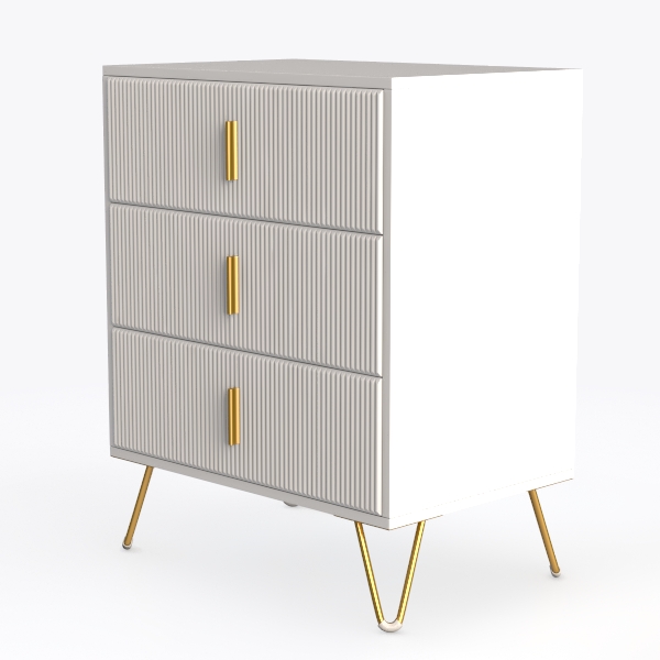 White Dresser for Bedroom, Fluted Modern Dresser with Gold Pulls and 3 Drawers, 15.7" D x 31.5" W x 29.5" H