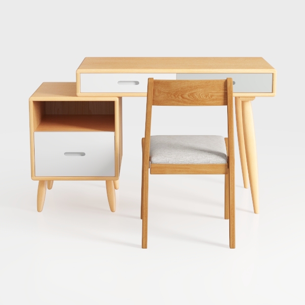 Inspired by Scandinavian minimalism, this set blends warm oak grain with smooth, clean lines, casting a soft, inviting vibe. Light wood tones and crisp white drawers craft a serene look, ideal for a modern minimalist home office or study nook. Pair with a marble lamp or potted plants to enhance its calm charm; plush gray cushion ensures ergonomic comfort, while spacious drawers and sturdy legs add practicality without sacrificing style.
