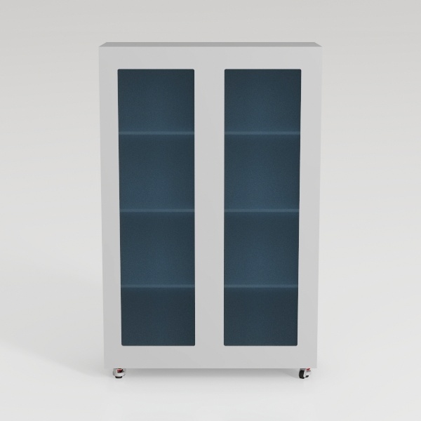 Designed for minimalist flexibility, this cabinet features a sleek white frame with a smooth, matte finish. Frosted glass doors add subtle opacity, while two-panel open shelving creates a clean, organized look. Casters allow easy movement—ideal for living rooms or home offices—pairing with modern sofas and potted plants to blend style and functionality seamlessly.