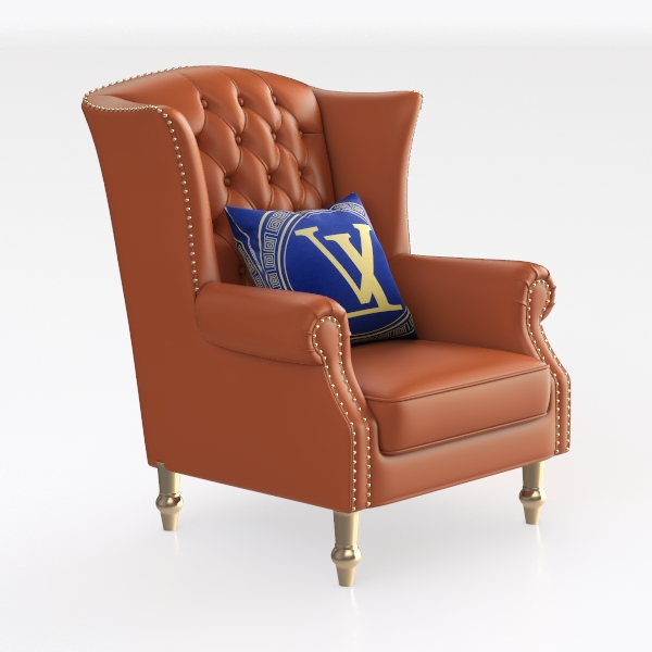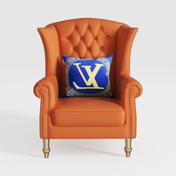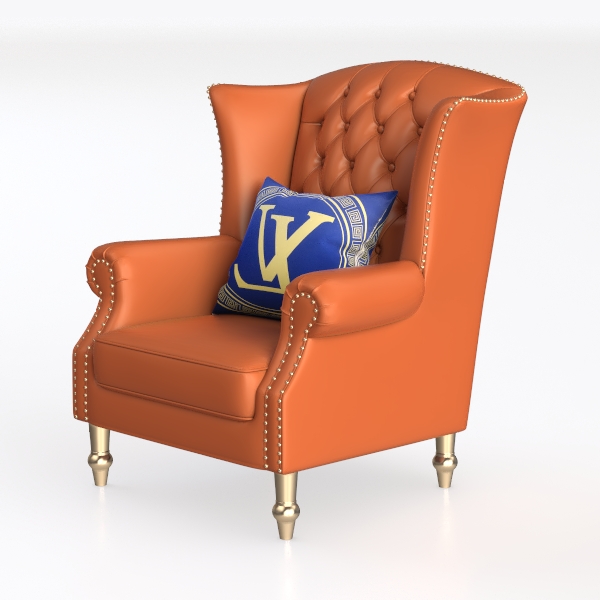 Inspired by classic wingback silhouettes, blending vintage charm with modern luxury, this armchair features smooth, rich orange upholstery with intricate diamond tufting and polished nailhead trim. Soft to the touch, its gold-finished legs add a warm, opulent glow, ideal for a modern-luxury living room with marble coffee tables and gold-accented lamps. Generous seat depth ensures exceptional comfort.