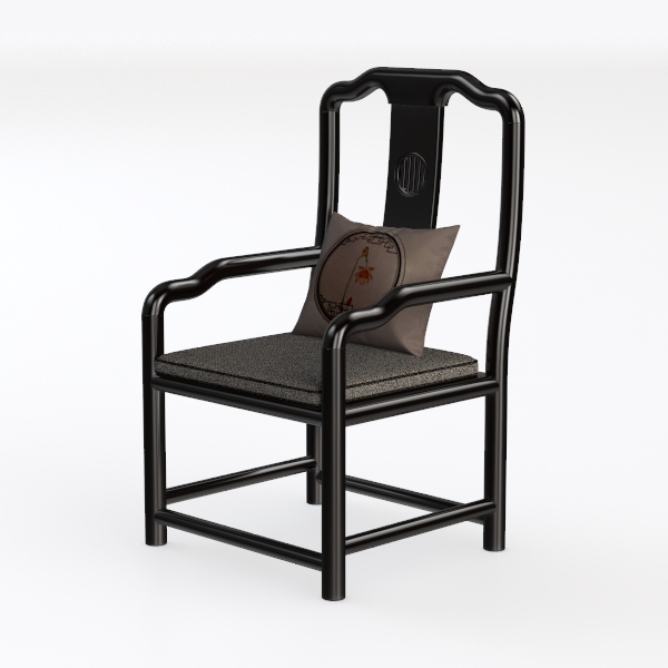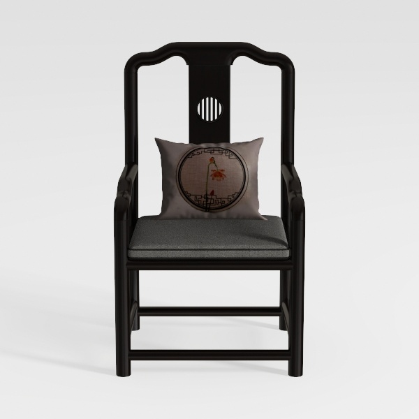 Crafted with traditional Chinese aesthetics, this armchair merges classic lines and modern comfort. Its sleek black frame, with a matte, smooth texture, contrasts beautifully with the soft gray upholstered seat, offering a tactile blend of sturdiness and warmth. Perfect for a new Chinese-style living room or study, it pairs with wooden tea tables and ink-wash artworks. Wide armrests and an ergonomic curved back ensure optimal support, ideal for relaxed reading or quiet moments.