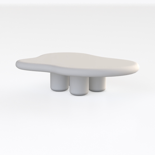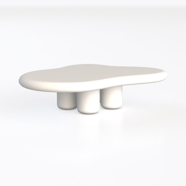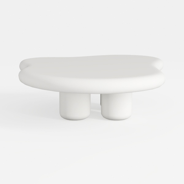 Inspired by soft, organic forms of nature, like floating clouds, this white side table features smooth, matte surfaces and flowing edges. Its tactile warmth and lightness contrast with harsh angles, ideal for modern minimalist or Scandinavian living rooms—pair with neutral sofas, greenery, and geometric rugs. A generous curved top holds books, cups, or decor, supported by stable cylindrical legs.