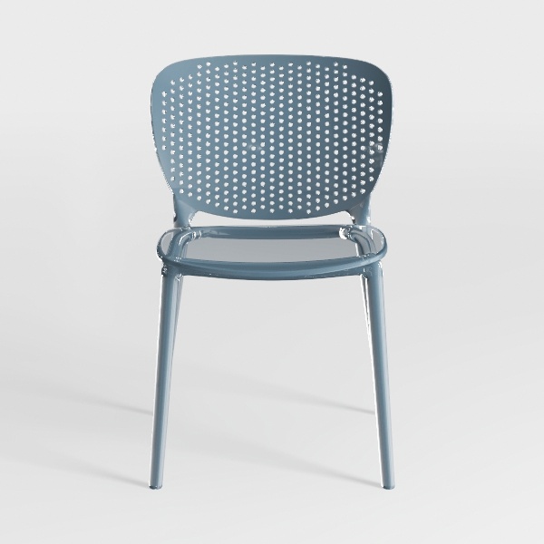 Inspired by the blend of organic lightness and geometric precision, this chair features a subtly perforated backrest that merges airiness with structural stability. Its smooth, cool surface and soft blue hue create a fresh, calming vibe. Ideal for a modern minimalist dining room or cozy living corner, it pairs beautifully with wooden tables and linen cushions. The curved back supports posture, while the slatted seat ensures breathability, balancing style and comfort seamlessly.