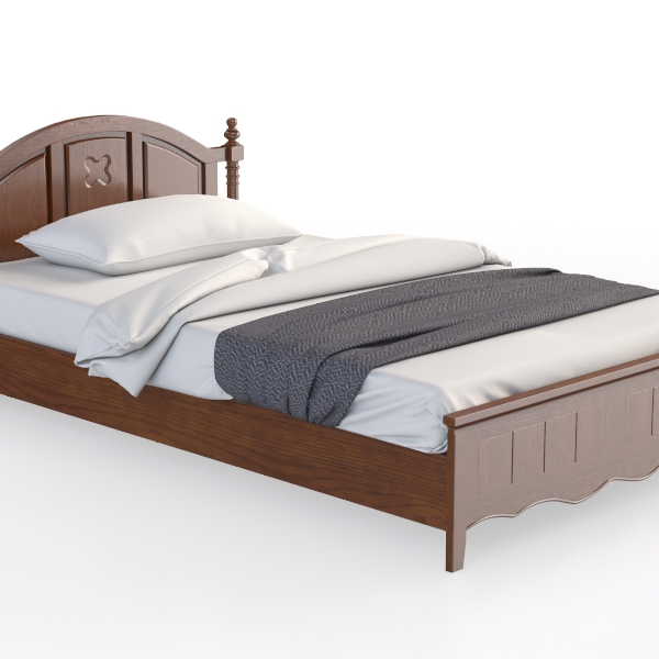 Inspired by classic craftsmanship, this wooden bed features an elegant curved headboard and intricate panel details. Its warm, rich wood grain offers a smooth, tactile feel, while soft linen bedding adds a cozy contrast, creating a timeless, inviting look. Perfect for rustic, traditional, or modern-classic bedrooms, it pairs beautifully with vintage wooden nightstands and warm lighting, with a sturdy frame and comfortable headboard ensuring durability and restful sleep.
