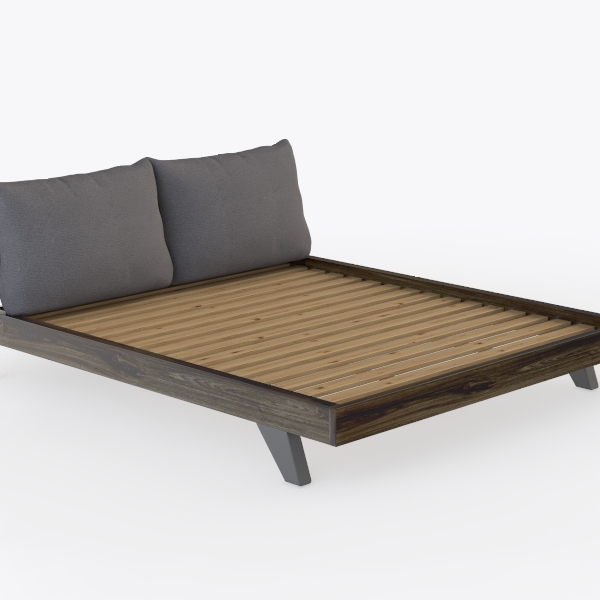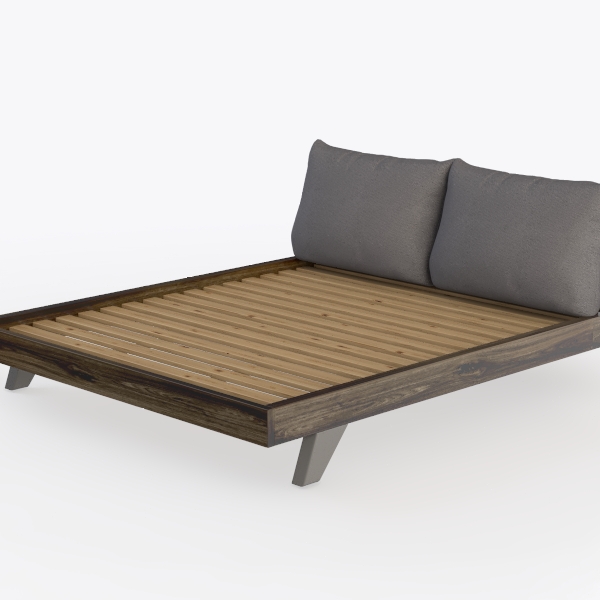 Inspired by nature’s organic warmth and industrial minimalism, this bed blends a wooden frame with visible grain for tactile texture, while matte metal legs add sleek contrast. The soft gray upholstered headboard, plump and inviting, enhances its clean, uncluttered look. Ideal for modern, Scandinavian, or industrial bedrooms, it pairs with light walls, linen bedding, and wooden nightstands. Sturdy slatted base ensures support, balancing style and comfort for restful nights.