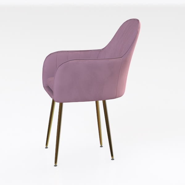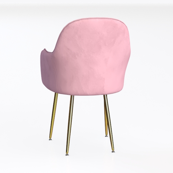 Sedia moderna in velluto rosa con struttura stabile in metallo per camera da letto o soggiorno, design elegante e comoda seduta