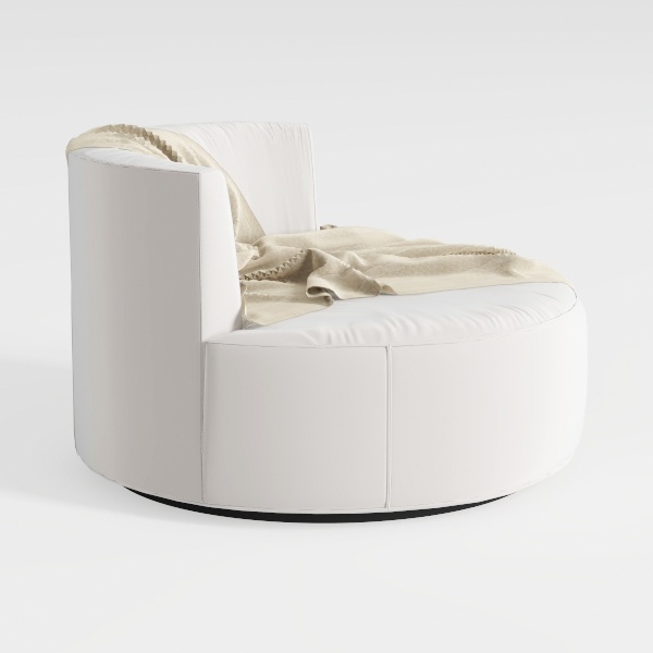 Beyond its aesthetic, the design prioritizes comfort: the deep, rounded seat and generously sized back cradle the body, offering plush support whether you’re leaning back or sitting upright. Its compact, circular footprint fits seamlessly into small spaces, while the bright white hue opens up the room, making it feel airy and spacious—perfect for both intimate moments and casual gatherings.