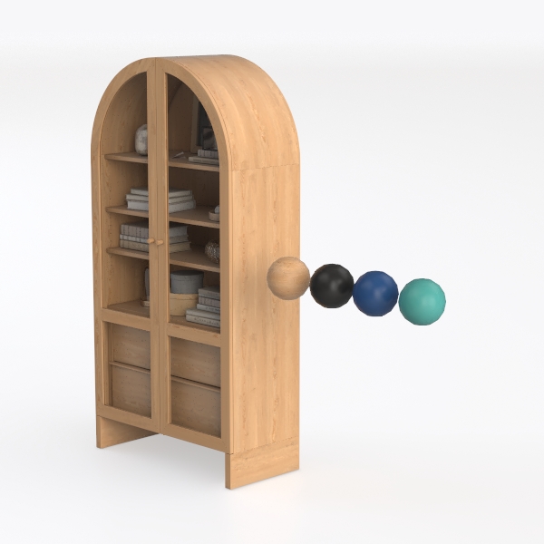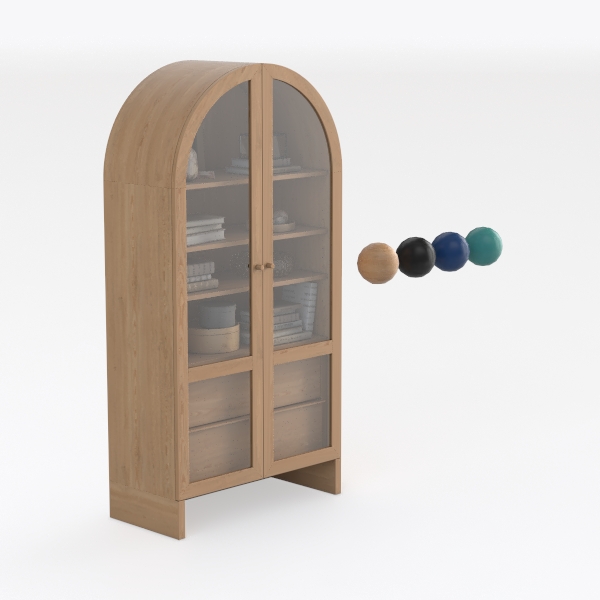 Inspired by mid-century minimalism, blending warm wood tones and soft curves. Warm, natural wood grains add tactile richness; smooth surfaces and glass doors bring a light, airy vibe. Ideal for a cozy living room or study, complementing Scandinavian and modern minimalist styles. Spacious shelves and hidden drawers offer ample storage, keeping books and decor organized.