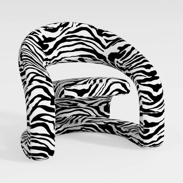 Drawn from the striking patterns of African wildlife, this armchair merges the organic rhythm of zebra stripes with mid-century modern design, balancing wild allure with refined elegance. The bold black-and-white print, rendered in a soft, velvety upholstery, catches light subtly, its high-contrast lines creating a dynamic, eye-catching effect that feels both lively and sophisticated.