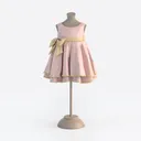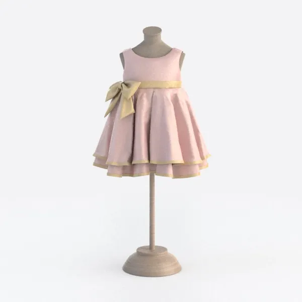 A 3D model of a Children's Apparel (Dress), featuring light pink fabric, a golden sash, and a bow, with an elegant/sweet aesthetic. It has low polygon count and is suitable for children's parties, festive occasions.
