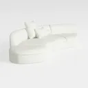 Crafted with a soft, textured fabric—reminiscent of warm, natural linen—its creamy white hue reflects light gently, infusing any room with a serene, airy glow. The surface features a subtle bouclé pattern that catches the eye without overwhelming, while the generously filled cushions invite relaxation, their plushness promising comfort with every sit.