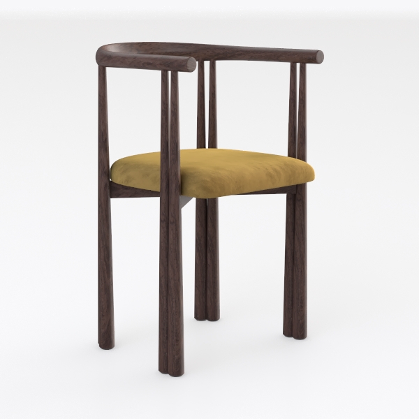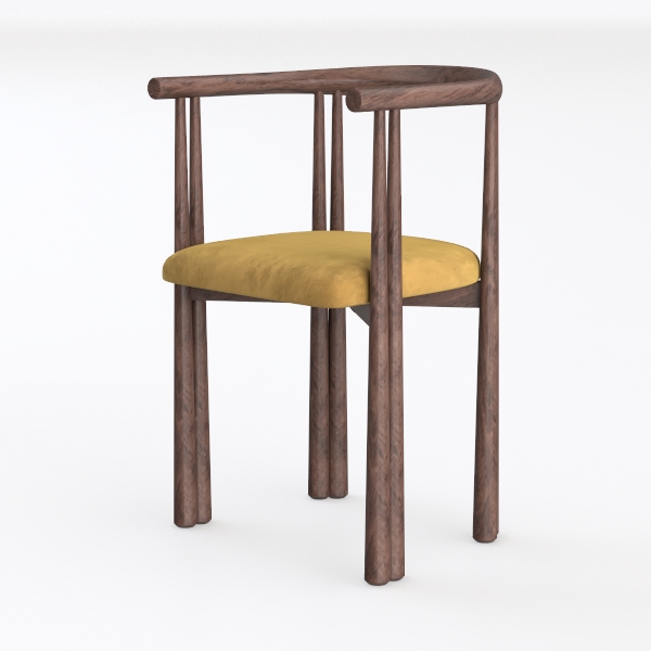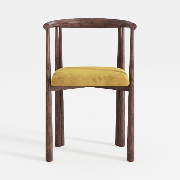 Maybe inspired by organic curves from nature, blending minimalism with warmth. The wooden frame features smooth, natural grain, while the soft mustard velvet seat adds a cozy, tactile contrast. Ideal for a modern Scandinavian or minimalist dining room, pairing beautifully with light-toned wooden tables and potted greenery. Sturdy yet lightweight, it offers comfortable seating for daily meals or casual gatherings.