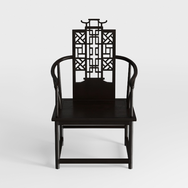 Inspired by traditional Chinese architectural latticework, this wooden armchair features a smooth, dark finish with intricate openwork backrest. Its wide armrests and stable frame offer comfort and durability, ideal for a serene study or minimalist living room, blending classic elegance with modern simplicity.