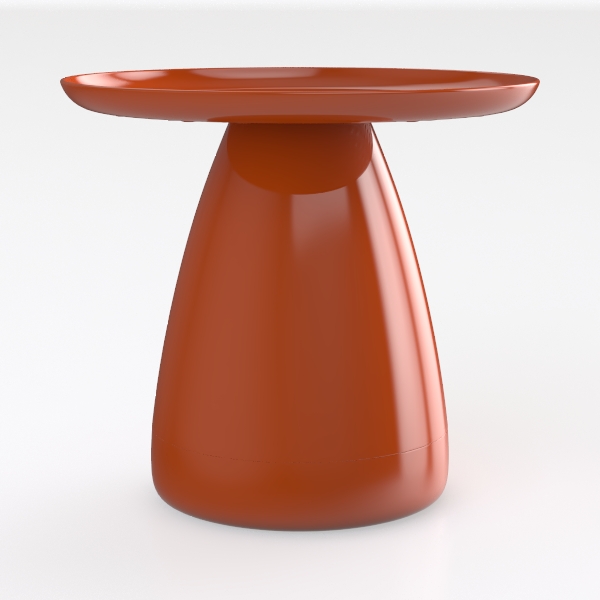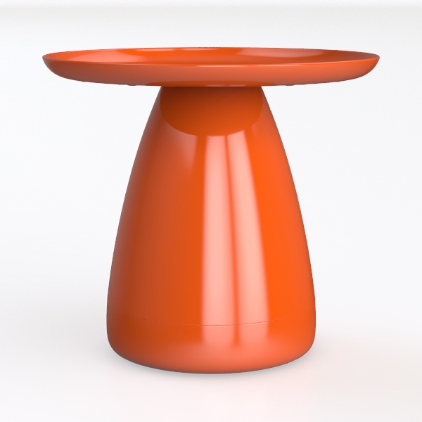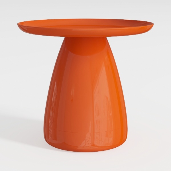Inspired by organic forms like a polished seashell, this vibrant orange side table features a sleek, glossy surface that feels smooth to the touch. Its warm hue adds a lively focal point to modern, minimalist spaces, perfect for pairing with a plush armchair and sculptural floor lamp. The generous circular top offers ample room for a lamp, books, or a potted plant, with a stable conical base ensuring durability.