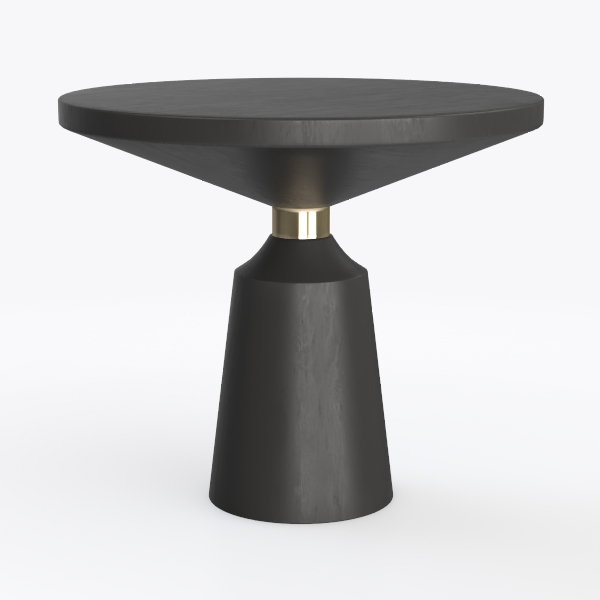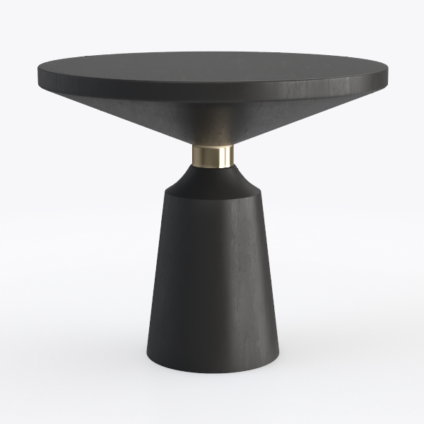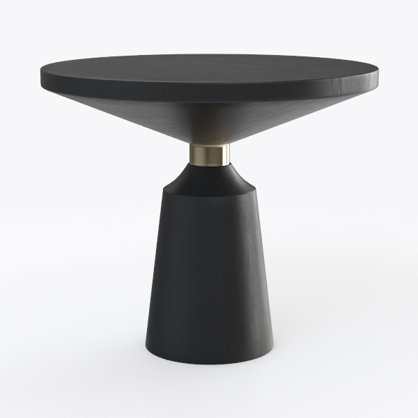 Inspired by mid-century modern geometry, this table features a smooth matte black surface with a sculptural, inverted cone base, accented by a polished gold band connecting the top and bottom. Its clean lines and warm tones create a sophisticated, minimalist vibe, perfect for elevating a modern-luxury living room when paired with velvet sofas and marble side tables. The sturdy base ensures stability, while the round top offers ample space for daily essentials, blending style and practicality seamlessly.