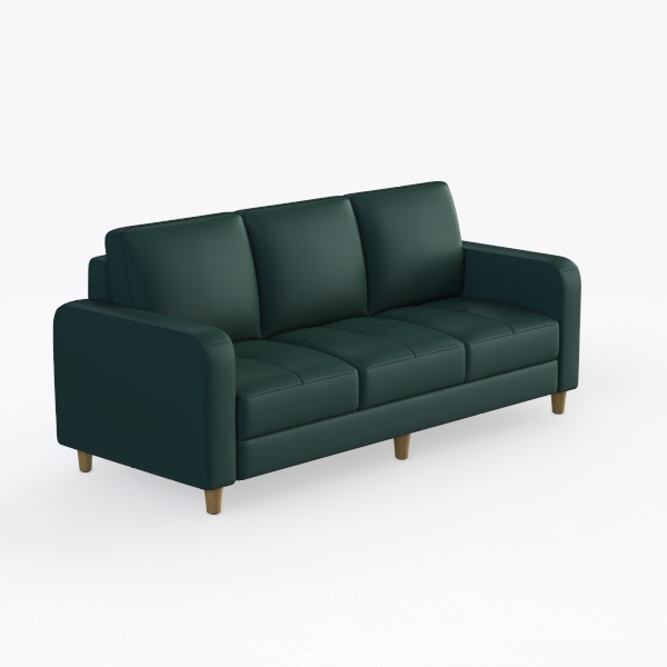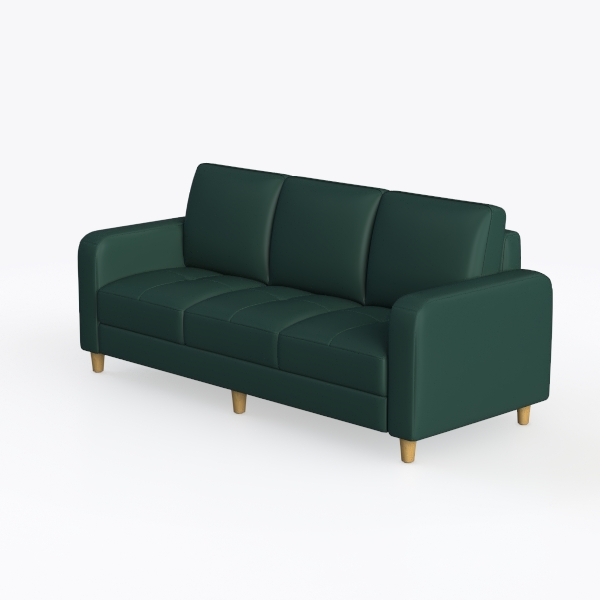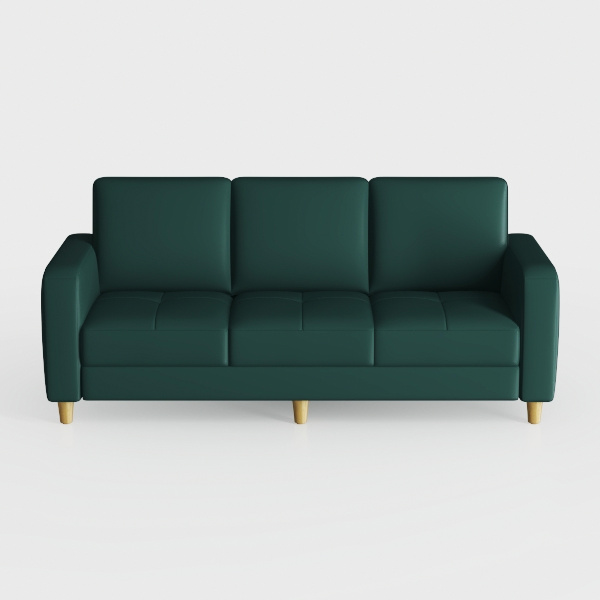Crafted with a focus on timeless comfort and understated elegance, this sofa draws inspiration from nature’s earthy palettes, with its rich emerald green hue evoking the calm of a sunlit forest. The upholstery feels soft yet supportive, its smooth texture catching light subtly to enhance the shade’s depth, while clean, straight lines define its sleek silhouette. Slim wooden legs add a warm, natural contrast, grounding the piece and keeping the design uncluttered.