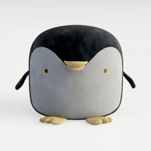 A stylized penguin plush toy featuring soft fabric textures in black, grey, and yellow, suitable for a playroom or modern decor, with 71224 polygons.